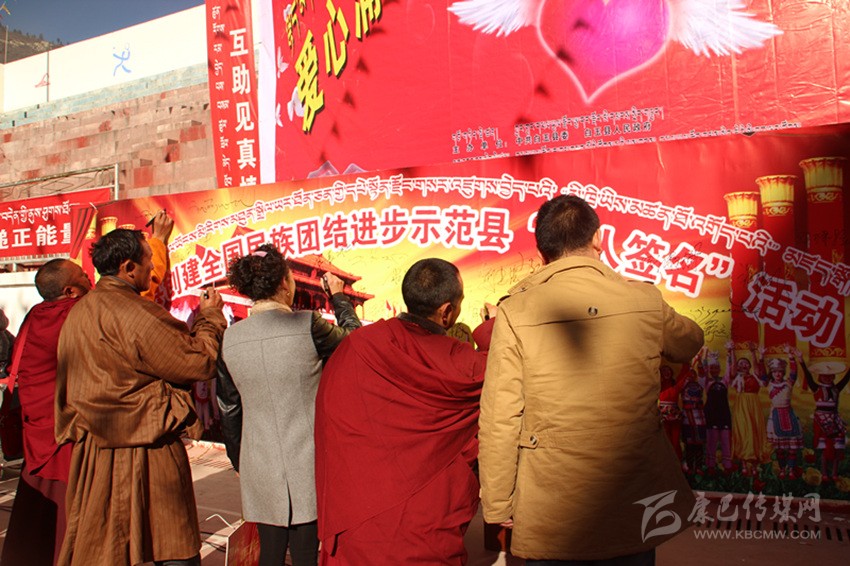 其實(shí),在白玉,像澤稱降措這樣感人肺腑的故事絕非個(gè)案。采訪中,筆者細(xì)細(xì)梳理五年來(lái)白玉的創(chuàng)建舉措與成績(jī),完全可以用“務(wù)實(shí)”“扎實(shí)”這四個(gè)字來(lái)形容。自2014年創(chuàng)建活動(dòng)啟動(dòng)以來(lái),縣委、縣政府嚴(yán)格按照“三年創(chuàng)建、四年提升”要求,緊扣“八進(jìn)活動(dòng)、共建對(duì)子”兩個(gè)關(guān)鍵,聚焦“民族團(tuán)結(jié)促發(fā)展、民族團(tuán)結(jié)促穩(wěn)定、民族團(tuán)結(jié)促民生”三大目標(biāo),采取“精準(zhǔn)安排、精準(zhǔn)施策、精心打造、精細(xì)管理”四項(xiàng)舉措,并通過層層簽訂目標(biāo)責(zé)任書和層層落實(shí)創(chuàng)建標(biāo)準(zhǔn)、測(cè)評(píng)指標(biāo),進(jìn)而形成了“黨委統(tǒng)一領(lǐng)導(dǎo)、黨政齊抓共管、部門各司其職、社會(huì)廣泛參與”的創(chuàng)建工作格局;采取“年度定方案、季度有督查、月月抓推進(jìn)、層層重落實(shí)”的方式,通過召開專題會(huì)、動(dòng)員會(huì)、現(xiàn)場(chǎng)會(huì)、督導(dǎo)會(huì)、匯報(bào)會(huì)等形式,抓問題、添措施、促整改、補(bǔ)短板、求提升,一系列動(dòng)真碰硬的推進(jìn),使得創(chuàng)建工作由“虛”變“實(shí)”;按照“精準(zhǔn)宣講、掛圖作戰(zhàn)、對(duì)單宣講、對(duì)村消號(hào)、定學(xué)式”的宣講思路,采取“縣到鄉(xiāng)、鄉(xiāng)進(jìn)村、村入戶、寺廟與僧尼”四個(gè)面對(duì)面等方式,并結(jié)合常態(tài)化開展的“四下鄉(xiāng)”活動(dòng),廣泛學(xué)習(xí)宣傳黨的民族理論、宗教政策、法律法規(guī)以及各項(xiàng)惠農(nóng)惠民政策。五年來(lái),全縣累計(jì)出動(dòng)宣講服務(wù)人員1180人次,開展宣講宣教、“四下鄉(xiāng)”活動(dòng)以及民族團(tuán)結(jié)“八進(jìn)”活動(dòng)多達(dá)988場(chǎng)次,覆蓋基層干部、農(nóng)牧民群眾和及寺廟近8萬(wàn)人次,發(fā)放各類宣傳資料2.3萬(wàn)余份、圖書光盤4500余本(張),贈(zèng)送各種書籍4130余冊(cè),放映電影152場(chǎng)次;在主要街道、繁華路段、出租車頂屏、燈箱燈桿以及干線公路沿線堡坎,設(shè)置LED屏、宣傳牌、滾動(dòng)標(biāo)語(yǔ)和墻體標(biāo)語(yǔ),推送各類創(chuàng)建信息上萬(wàn)余條,在各機(jī)關(guān)、單位、醫(yī)院、學(xué)校、寺廟、鄉(xiāng)鎮(zhèn)、村組(社區(qū))設(shè)置民族團(tuán)結(jié)標(biāo)語(yǔ)、宣傳櫥窗、展板和文化墻,推出各類宣傳欄2145個(gè)、宣傳展板 435個(gè);在縣級(jí)宣傳平臺(tái)開設(shè)專欄,完成各類主題宣傳300余場(chǎng)次;舉辦創(chuàng)建“萬(wàn)人簽名”、鍋莊節(jié)、演講比賽、籃球友誼賽、知識(shí)競(jìng)賽、文藝演出等各類民族團(tuán)結(jié)主題活動(dòng)近20場(chǎng),實(shí)現(xiàn)了創(chuàng)建宣講宣傳宣教全方位、多層面、立體式和廣覆蓋;切實(shí)將民族團(tuán)結(jié)工作與脫貧攻堅(jiān)、基層黨建、群眾工作、鄉(xiāng)村治理、依法治縣等有機(jī)結(jié)合,大力開展干群結(jié)對(duì)認(rèn)親、干部聯(lián)寺聯(lián)僧、支部共建共創(chuàng)以及警民共建等活動(dòng);切實(shí)在廣大農(nóng)牧民群眾、幫扶援建隊(duì)伍、宗教寺院、學(xué)校師生、企業(yè)以及部隊(duì)中發(fā)現(xiàn)典型、宣傳典型,進(jìn)而在全縣上下形成了“學(xué)先進(jìn)、趕先進(jìn)、當(dāng)標(biāo)兵”的濃厚氛圍;采取政策傾斜、整合項(xiàng)目、配套資金等措施,狠抓示范點(diǎn)規(guī)范化建設(shè)。目前,全縣所有鄉(xiāng)(鎮(zhèn))、縣級(jí)黨政機(jī)關(guān)、武警部隊(duì),45%以上的村(社區(qū))、企事業(yè)單位和寺廟已成為民族團(tuán)結(jié)進(jìn)步示范地區(qū)或示范單位;……精準(zhǔn)發(fā)力、持續(xù)給力的創(chuàng)建活動(dòng),有效形成了創(chuàng)建活動(dòng)“人人參與、人人推動(dòng)、人人負(fù)責(zé)、人人共享”的喜人局面。