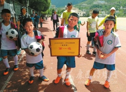 山里娃娃吃得苦、受得累、體能好、跑得快。通過集訓(xùn)體能、技藝和賽場對抗能力,球員在短時間里球技突飛猛進,接連取得優(yōu)異戰(zhàn)績:去年6月,參加“2018年瀘定縣中小學(xué)生足球選拔賽”獲得了低段組第一名;去年7月,參加“甘孜州第三屆青少年校園足球聯(lián)賽”獲得了甘孜州東路片區(qū)足球賽低段組第一名。