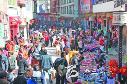丹巴步行街人潮涌動。安斗阿布 攝