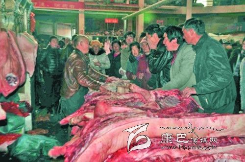 肉食品市場(chǎng)顧客盈門。