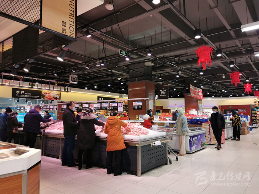 在二樓的豬肉供應(yīng)攤點,康定冷鏈凍制品有限責(zé)任公司積極響應(yīng)政府的號召,為了讓市民能夠買到放心的新鮮豬肉,1月30日,該公司門店冷鏈生鮮肉業(yè)共計屠宰了4頭生豬,該公司職員告訴記者,疫情期間,豬源供應(yīng)緊張,并且要經(jīng)過層層檢疫才能進(jìn)入市場,但是公司仍然積極尋找豬源,保證疫情期間的豬肉供應(yīng),所以即便是到了下午仍能買到新鮮豬肉。