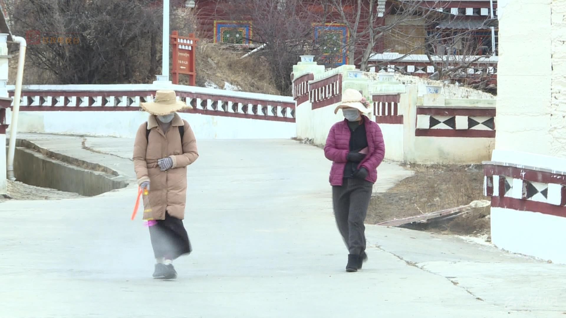 除了7個州縣級卡點外,在各鄉(xiāng)村同樣是嚴防死守,筑牢了嚴控疫情的第一防線。在距離縣城三公里的格西鄉(xiāng)若珠村村口,我們看到村黨支部書記澤機和村委會主任尼瑪降澤頂著寒風依然駐守在卡點上。尼瑪降澤介紹說全村有65戶283人,他說支部書記負責村口卡點的24小時值守,其余六名村干部就負責包戶巡邏檢查,每天村里的消毒,村民的體溫監(jiān)測統(tǒng)計等等,大家都繃緊著嚴防死守這根弦。