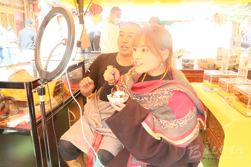 “大家請看我手中的酸奶,純天然,無添加,綠色產(chǎn)品,值得擁有,價格不高,15元一桶,快遞到家……”納塔鄉(xiāng)展銷點內(nèi)正在做帶貨直播。直播間里,擔任“帶貨官”角色的工作人員其麥拉姆毫不怯場,說村情、講故事、推產(chǎn)品,為網(wǎng)友介紹了納塔的系列高原特色優(yōu)質(zhì)產(chǎn)品。云端上遇見的特殊主播,讓直播間瞬間畫風突變、互動頻頻。留言區(qū)也如流水線一般,源源不斷地流動著網(wǎng)友的互動。