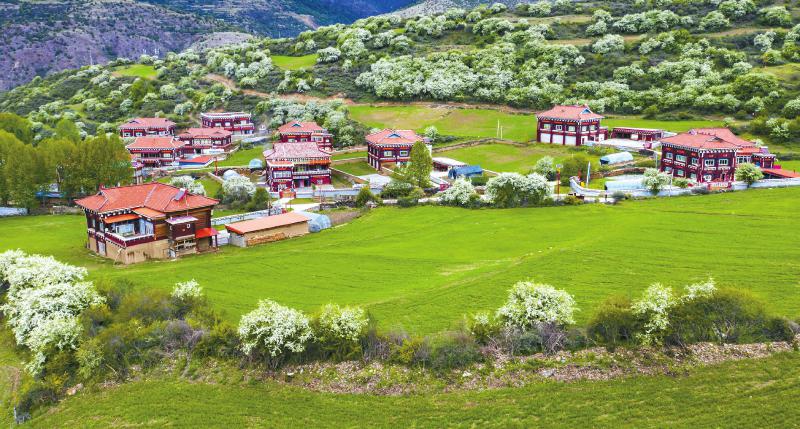 一幢幢嶄新的藏房在藍(lán)天下挺立,一條條整潔的水泥路像潔白的哈達(dá)延伸四方……