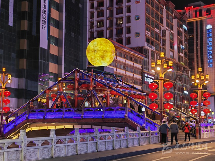 除了讓人眼前一亮的各種絢麗的花卉燈飾和被大紅燈籠、如意掛飾的大街小巷,最被市民津津樂道的莫過于中橋的明月景觀和東關U形廣場上的“五彩色神?!薄C髟戮坝^又稱《世界的康定》,此景觀以月球為主體,在橋兩側再輔助以音符及五線譜造型。其寓意為情歌唱響世界,康定名揚世界。而矗立在東關廣場上的新增雕塑景觀就更意義非凡了。雕塑通體是以一頭雄壯的牦牛形象呈現(xiàn),牦牛下方的紅色高臺正前方鐫刻的是政府公仆一心為民的錚錚誓言?!罢臓I造喜慶洋洋的節(jié)日氛圍,讓我們感受到了濃濃的‘年味’,在黨和政府的關懷下,我們老百姓的生活一年更比一年好,幸福感也是一年更比一年強?!?5歲高齡的扎西激動地跟記者分享著他的喜悅。