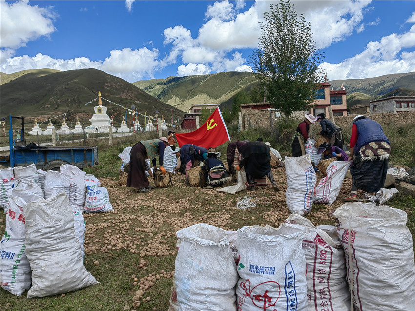 “現(xiàn)在黨的政策好啊,我們的種子都是國(guó)家發(fā)的,還有農(nóng)技員指導(dǎo)種植,現(xiàn)在土豆畝產(chǎn)基本都在4000斤左右,相比傳統(tǒng)自己留種,產(chǎn)量大幅提升。以前我們都是自給自足,現(xiàn)在留夠口糧還能將多余的土豆拿到市場(chǎng)上銷售。我們木拉的土豆口感、品質(zhì)都是最好,在市場(chǎng)上很暢銷,價(jià)格都在2元一斤以上,共產(chǎn)黨嘎真切(藏語(yǔ):謝謝的意思)?!笨粗鴿M滿一袋的土豆,村民丁真降措擦了擦額頭的汗高興地說(shuō)。