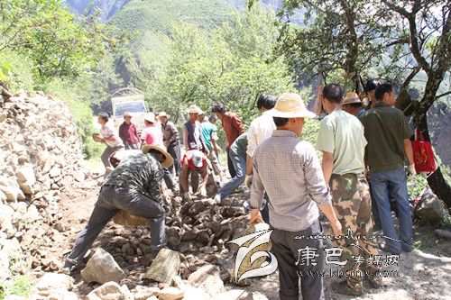 丹巴縣岳扎鄉(xiāng)納頂通村公路全長里程13公里,惠及上、中、下納頂和斯交四村319戶1196人,因前期連續(xù)強(qiáng)降雨,納頂通村公路主干道垮塌嚴(yán)重,交通一度被阻斷,嚴(yán)重影響了村民的出行安全以及農(nóng)副產(chǎn)品外運(yùn)。為盡快搶通公路,多名干部群眾在水電企業(yè)裝載機(jī)的全程協(xié)助下,經(jīng)過近10個(gè)小時(shí)的連續(xù)奮戰(zhàn),終于完成了通村公路的清障工作。圖為村民們?cè)诠飞锨逭稀?(卿莉 攝影報(bào)道)