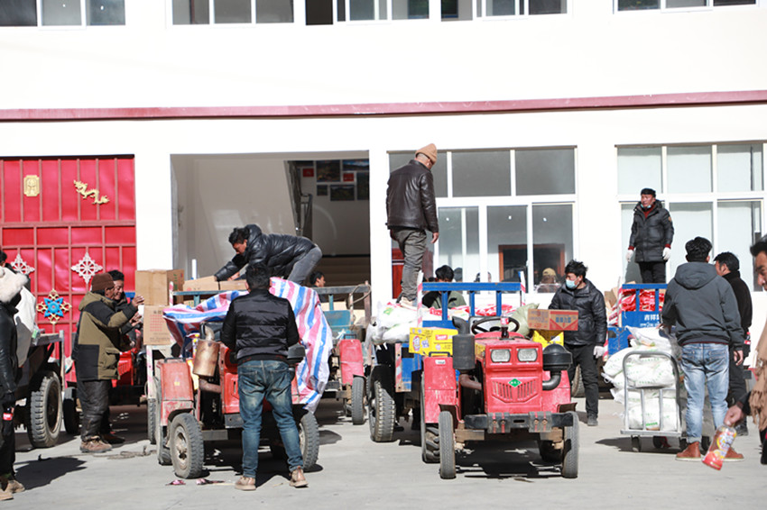 “今天我們村的17戶村民來(lái)領(lǐng)物資,臨近春節(jié)了,這些生活用品的發(fā)放真是太及時(shí)了,感謝黨和政府的關(guān)懷,我們的生活真是越來(lái)越好了?!睙峒余l(xiāng)拉巴村村民昂布開(kāi)心地說(shuō)。