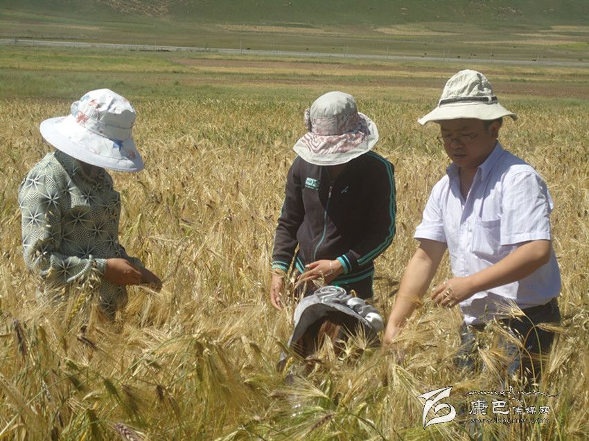 甘孜縣援藏干部人才下鄉(xiāng)估測(cè)青稞產(chǎn)量。