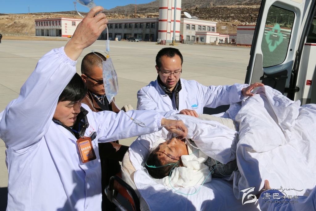 當(dāng)日上午8時(shí)40分,州人民醫(yī)院醫(yī)護(hù)人員對(duì)該名傷員進(jìn)行了轉(zhuǎn)運(yùn)前的最后護(hù)理。隨后,救護(hù)車在綠色通道疏導(dǎo)下,直奔海拔4238米康定機(jī)場(chǎng),在轉(zhuǎn)運(yùn)的過(guò)程中,考慮到當(dāng)?shù)馗吆0蔚那闆r,救護(hù)車上安裝了供氧裝置,醫(yī)護(hù)人員全程陪護(hù),將送他到華西醫(yī)院救治。