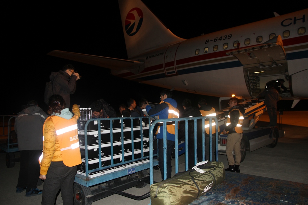 為了盡快給災(zāi)區(qū)人民送去切實(shí)需要的救援物資,解決他們的臨時(shí)住所和安全飲水等問題,同時(shí)也是安撫災(zāi)區(qū)人民的情緒。四川康定機(jī)場(chǎng)集團(tuán)公司董事長(zhǎng)譚亨帶領(lǐng)機(jī)場(chǎng)救援工作組在23日6點(diǎn)28分航班抵達(dá)后,以最快速度裝載好所有物資,全速趕往震中塔公鄉(xiāng)。