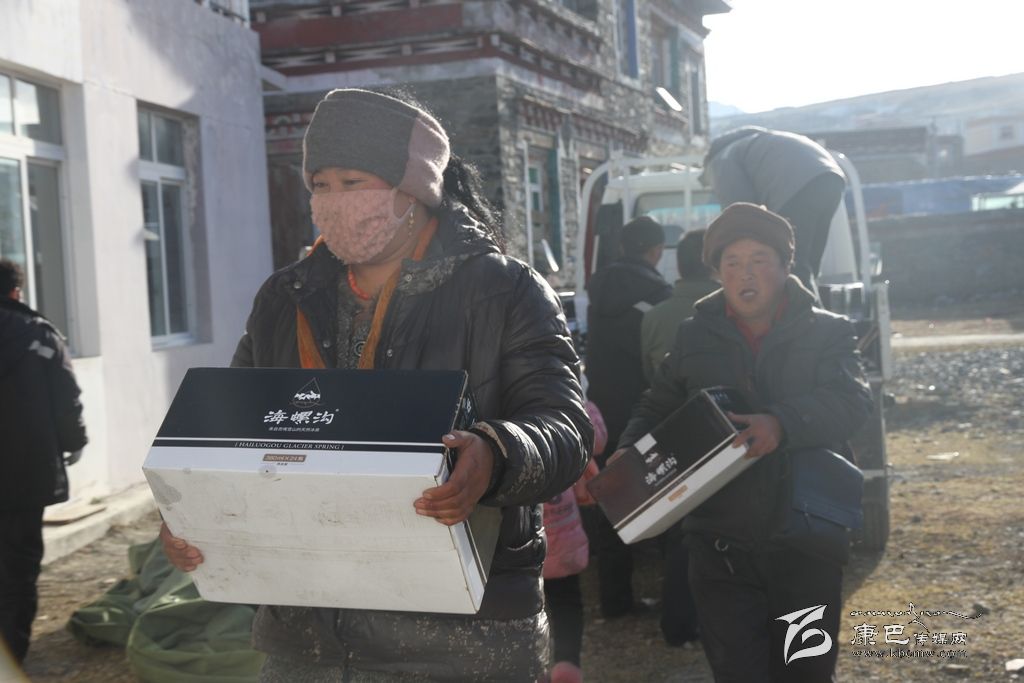 途中見到色曲卡、塔公、各日瑪3村民房均有不同程度損害,但尚未發(fā)現(xiàn)垮塌。在塔公鄉(xiāng)黨委政府的接應(yīng)和協(xié)助下,早上8點(diǎn)30分,50頂帳篷已全部發(fā)放到色曲卡村,50箱方便面、10箱牛奶、以及70件四川康定機(jī)場(chǎng)集團(tuán)旗下海螺溝冰川水業(yè)生產(chǎn)的礦泉水等物品也分別發(fā)放到了塔公、各日瑪兩村。