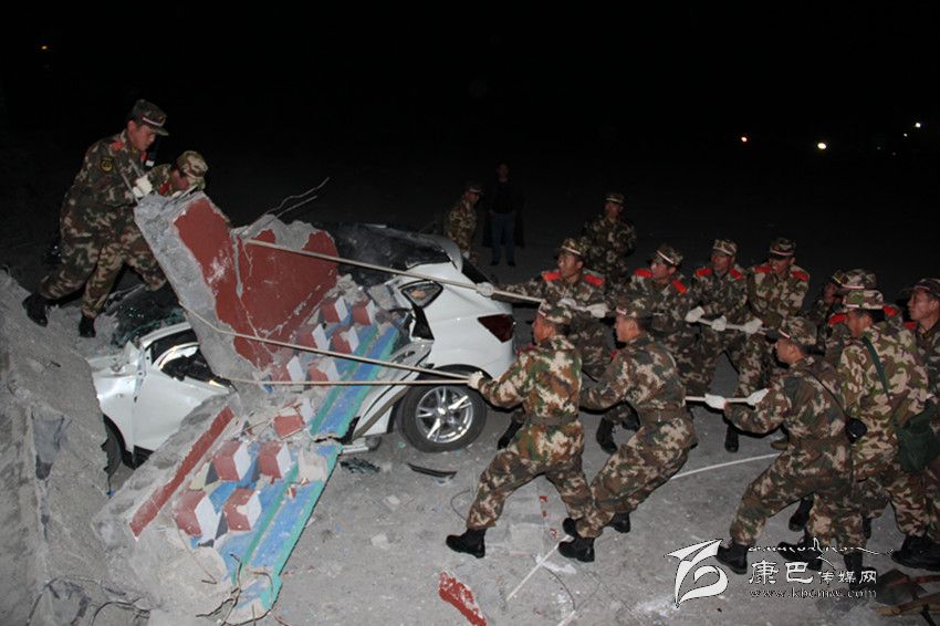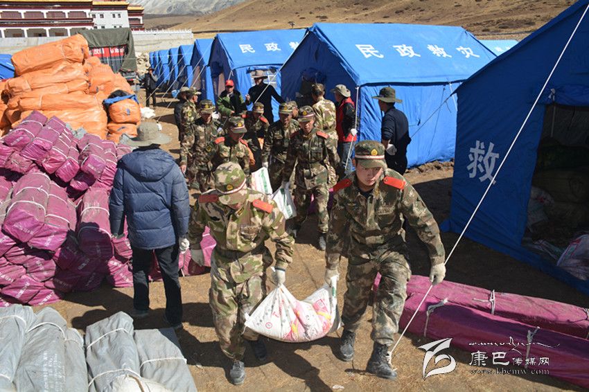 州森警支隊(duì)參謀長(zhǎng)帶前指和康定中隊(duì)60人到達(dá)震中塔公鎮(zhèn)奪讓村和木雅祖慶學(xué)校。官兵看到校舍慘景和師生驚慌失措表情,忘記了奔波疲勞和自身安危,有序疏散30名師生、搶救學(xué)校2臺(tái)受損車輛,冒著零下近10度的低溫,連夜為師生搭建帳篷17頂、簡(jiǎn)易廁所10個(gè),參戰(zhàn)官兵一夜未睡奮戰(zhàn)至黎明。23日8時(shí)10分,參戰(zhàn)的森警官兵又奉命轉(zhuǎn)戰(zhàn)至瓦澤鄉(xiāng)魚(yú)子西1、2、3村,為藏牧民轉(zhuǎn)移牦牛等牲畜200余頭,從危房中搬運(yùn)大米、青稞等糧食11.8噸,沙發(fā)、銅火爐、電視機(jī)等1680余件(套)。24日上午官兵又深入到瓦澤鄉(xiāng)麥巴村,為受災(zāi)群眾拆除危房2間、搬運(yùn)危房?jī)?nèi)貴重物品10余噸,下午,抗震救災(zāi)指揮部又緊急調(diào)參戰(zhàn)森警官兵為沙德鄉(xiāng)運(yùn)送棉帳篷等救災(zāi)物資,支隊(duì)前指帶50人動(dòng)用6臺(tái)車輛機(jī)動(dòng)110公里到達(dá)沙德鄉(xiāng)政府,又連夜劃分四個(gè)行動(dòng)小組為沙德鄉(xiāng)7個(gè)偏遠(yuǎn)村(組)將帳篷運(yùn)送到位,官兵一夜未睡將10余頂棉帳篷依次搭建到位。25日上午,官兵又接到塔公鎮(zhèn)扎西寺僧尼告急,60名官兵顧不上吃飯,緊急出動(dòng)運(yùn)輸15頂棉帳篷,奮戰(zhàn)扎西寺5個(gè)安置點(diǎn),至晚19時(shí)才搭建完畢,官兵就座運(yùn)兵車?yán)锎蝽镄菡?6日上午,武警總部工作組看望慰問(wèn)參戰(zhàn)一線官兵,官兵精神振作,按抗震救災(zāi)指揮部指示,60名官兵在聯(lián)指物資發(fā)放中心,搬運(yùn)裝卸棉帳篷、棉大衣、棉被等越冬衣物和礦泉水、大米、面粉、蔬菜等生活物資68噸。目前,60名官兵仍?shī)^戰(zhàn)一線,雅江大隊(duì)、道孚大隊(duì)部分官兵在各自轄區(qū)展開(kāi)震后自救互救行動(dòng)。