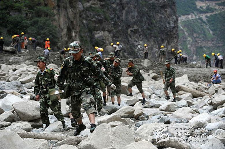 2009年7·23康定舍聯(lián)鄉(xiāng)泥石流災(zāi)害發(fā)生后,武警官兵在現(xiàn)場(chǎng)救援。 資料圖