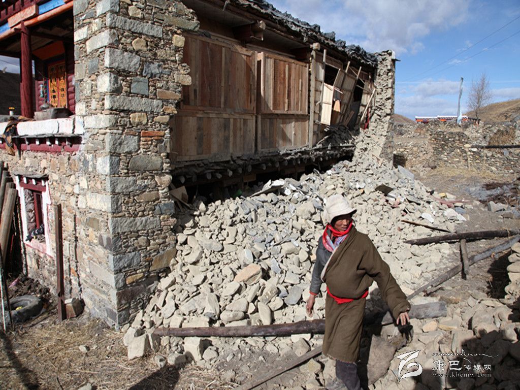 該村不少舊式藏居已經(jīng)徹底倒塌,瓦礫遍地。正在幫助村民搭建帳篷的中古村包村干部劉怡說,全村共189戶村民,125戶有房,受災(zāi)110棟房,其中五組受災(zāi)最嚴重,31戶房屋倒塌。這個村當年沒有被納入牧民定居建設(shè)。