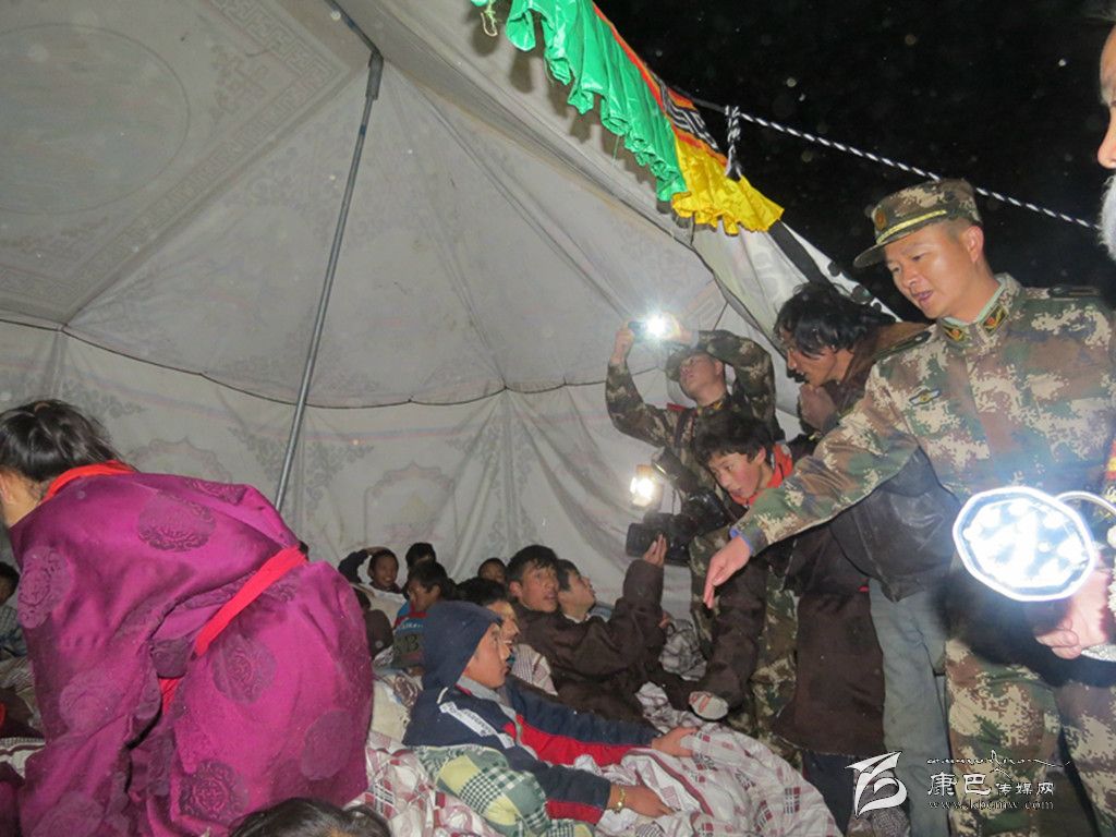 凌晨1時(shí),在江巴村,60名官兵挨家挨戶(hù)搜救轉(zhuǎn)移群眾,連夜搭建救災(zāi)帳篷。“同志,我的小女兒拉姆找不著了,可能埋在房子里了……”澤仁阿巴急匆匆地拉著武警戰(zhàn)士的手求援,“你家在哪里?快帶我們?nèi)ィ?rdquo;未等四十歲的澤仁阿巴說(shuō)完,官兵們奔向不遠(yuǎn)處的一堆倒塌的房屋??紤]到有人埋在下面,官兵們不敢用鎬刨用鍬鏟,在另一面墻上石片不停掉落的情況下,仍然紛紛撲下身子扒拉土石結(jié)構(gòu)的殘?jiān)珨啾冢罱K在兩個(gè)木箱中間找到了已哭成淚人的小拉姆,所幸6歲的拉姆安然無(wú)恙。