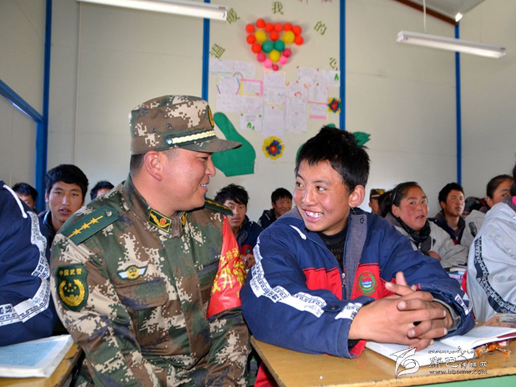 為使康定“11.22”地震災(zāi)區(qū)學(xué)生盡快走出心理陰影,樹立勇敢面對災(zāi)難的信心,連日來,武警四川總隊二支隊抗震救災(zāi)官兵主動與木雅祖慶學(xué)校對接,擔(dān)負(fù)起該校的“校外輔導(dǎo)員”職責(zé),主要在學(xué)生中開展愛國教育、軍訓(xùn)、心理輔導(dǎo)和一對一功課輔導(dǎo)等活動。圖為12月10日上午,武警官兵利用學(xué)生自習(xí)時間和學(xué)生們開展活動。(于傳濤 攝影報道)