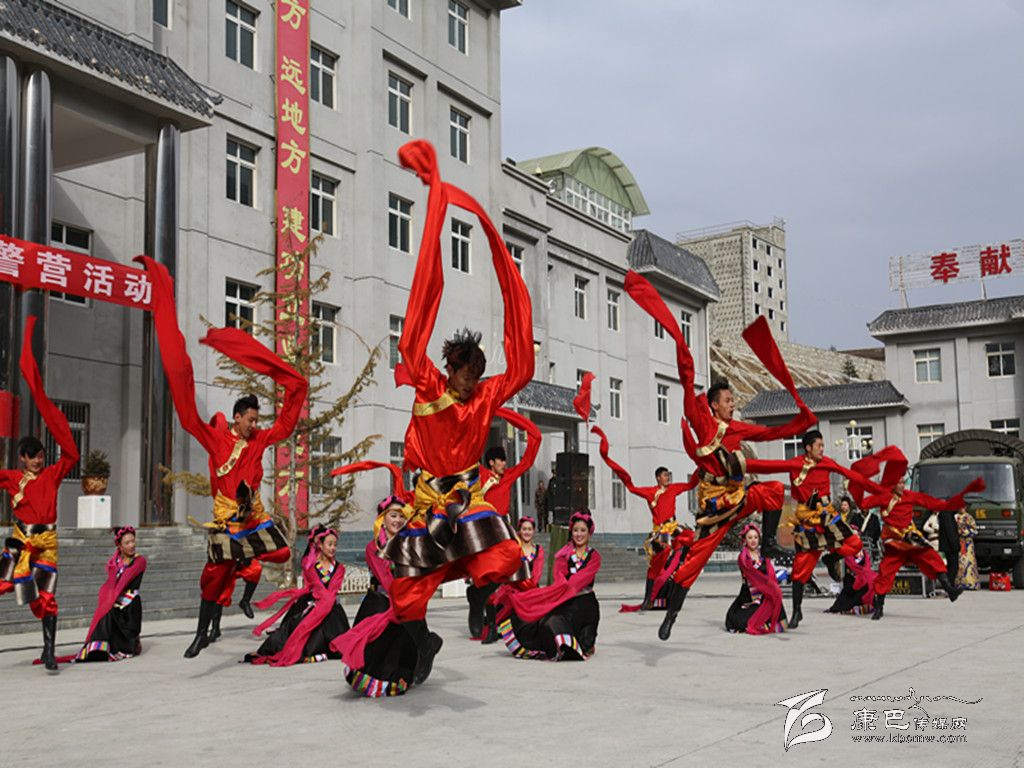 演出活動在充滿藏族民族風情的男女群舞《吉祥頌》中拉開帷幕,節(jié)目一開始,演員們激昂的熱情、優(yōu)美的舞姿給觀眾們帶來了美的享受,女子獨唱《納西情歌》《套馬桿》、男生獨唱《吉祥謠》、女子群舞《情灑康巴》、男子群舞《青春踢踏》、女子快板《甘孜兒女心向黨》等精彩節(jié)目相繼登場,將演出活動推向一個又一個高潮。特別是由支隊官兵表演的民族舞蹈《野人狂歡》、表演唱《當兵就是帥》等精彩節(jié)目,贏得了觀眾們的陣陣喝彩。雖然天氣異常寒冷,天空還不時飄起了雪花,但演員們卻一直以飽滿的激情、嫻熟的技藝,為官兵們獻上了一個又一個精彩的節(jié)目。整場演出抒發(fā)了駐地群眾對人民子弟兵的深厚情誼和感激之情,表達了他們對人民子弟兵扎根高原、無私奉獻的欽佩之情,他們用自己的精彩表演,向人民子弟兵致以最親切的問候和最誠摯的敬意。