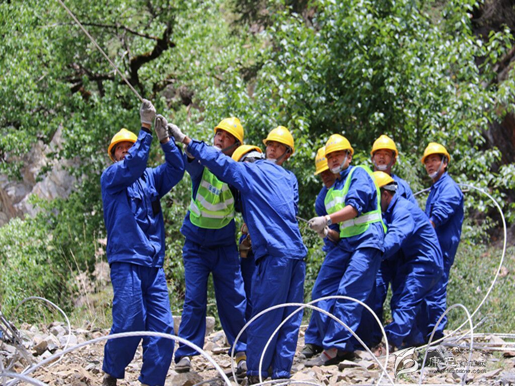 為了圓農(nóng)牧民通電夢(mèng),甘電公司誓要打好“決戰(zhàn)年”戰(zhàn)役。山高、路難、溝深、水急是今年無(wú)電區(qū)電力建設(shè)現(xiàn)場(chǎng)的真實(shí)寫照。在甘孜高原上奮斗著來(lái)自參建的監(jiān)理、建設(shè)和施工單位共計(jì)15支隊(duì)伍,他們和高原惡劣的氣候抗衡著,他們用“奮斗”二字譜寫著一首“電力人之歌”,為無(wú)電地區(qū)的藏族百姓早日通電打好了“決戰(zhàn)年”的戰(zhàn)役。在甘孜州各縣條件艱苦的無(wú)電地區(qū)工程建設(shè)點(diǎn),隨處可見(jiàn)身著國(guó)網(wǎng)標(biāo)志的身影。在色達(dá)、甘孜、石渠、理塘、巴塘、雅江等邊遠(yuǎn)的“無(wú)電地區(qū)”施工現(xiàn)場(chǎng),電力建設(shè)者們,頂寒風(fēng),斗冰雪,與惡劣環(huán)境抗衡,立塔架線,每天早出晚歸,完成一項(xiàng)又一項(xiàng)“難啃”的工程,夜晚燒堆篝火取暖,次日再次奔赴施工現(xiàn)場(chǎng)。這樣的“辛苦”記者在采訪過(guò)程中也見(jiàn)到。在雅江縣德差鄉(xiāng),手握對(duì)講機(jī),身穿工裝的工程項(xiàng)目負(fù)責(zé)人龍森和他所以在的工程隊(duì)的工人們每天都是頂著烈日、冒著風(fēng)雨加班加點(diǎn)在趕工程進(jìn)度,幾個(gè)月下來(lái),有的工人身上被太陽(yáng)曬掉了幾層皮??墒撬麄儚膩?lái)沒(méi)有喊一聲苦,喊一聲累,晴天一身汗,雨天一身泥,每到一個(gè)點(diǎn)都出色完成了任務(wù)。在困難和辛苦面前,龍森和工人師傅堅(jiān)定的說(shuō):“再苦再累我們也受得了,只要老百姓能盡快用上電做什么都值得。這段路線的電桿已經(jīng)全部立起來(lái)了,現(xiàn)在只剩下架線的工作。我們一定要在月底之前為這兩個(gè)村通上電。”