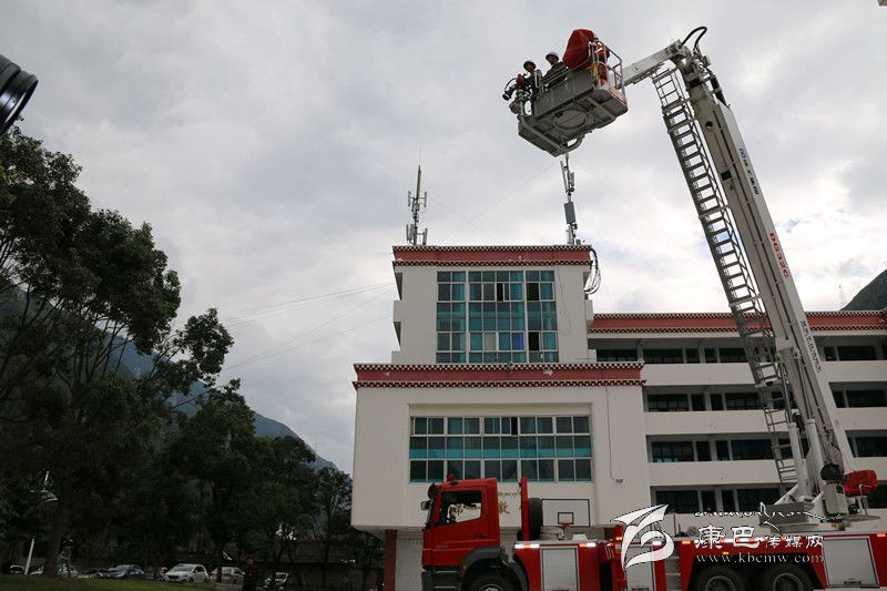 為使參訓(xùn)學(xué)生更好地將此次學(xué)習(xí)到的消防知識融于實踐,消防部門還在校園操場,組織參訓(xùn)學(xué)生開展了油盆火災(zāi)撲救,現(xiàn)場學(xué)生紛紛踴躍報名,現(xiàn)場氣氛十分活躍。在消防官兵的指導(dǎo)下,學(xué)生們分為三組,利用手提式干粉滅火器進(jìn)行了油盆火災(zāi)撲救演練,提瓶、拔銷、對根、壓柄一氣呵成,火勢被順利撲滅。隨后,消防官兵又向?qū)W生們演示了單干線出兩支水槍滅火操,并介紹了甘孜州最尖端的消防車輛器材及裝備,組織參訓(xùn)新生進(jìn)行了一場32米登高平臺車高空作業(yè)體驗。按照操作規(guī)程,消防官兵協(xié)助參加體驗的學(xué)生戴好防護(hù)頭盔,扎上綁有安全繩的防護(hù)腰帶,順利登上了登高平臺。在消防官兵嫻熟的操作技術(shù)下,登高平臺勻速上升到20米高空,現(xiàn)場傳來了一陣陣驚嘆聲。