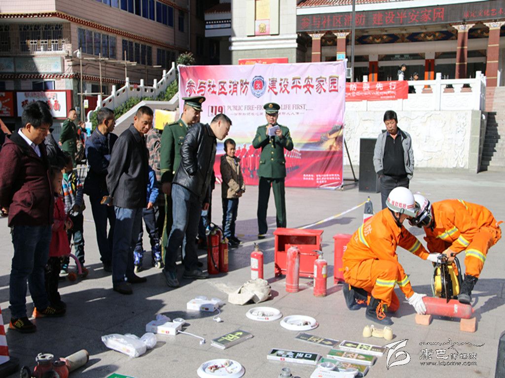 在“119”到來之際,為提高群眾消防安全意識,積極查找身邊火災(zāi)隱患,州公安消防支隊(duì)于8日在康定情歌廣場開展“參與社區(qū)消防、建設(shè)平安家園”消防宣傳主題活動(dòng)?;顒?dòng)現(xiàn)場除展示了消防器材、消防車輛及宣傳品外,還開展了油盆滅火、銷毀過期消防產(chǎn)品等活動(dòng)。為提高群眾參與度,本次宣傳活動(dòng)還采取消防知識有獎(jiǎng)趣味問答、關(guān)注微信抽獎(jiǎng)等方式進(jìn)行互動(dòng)。圖為消防官兵向向群眾展示消防器材。