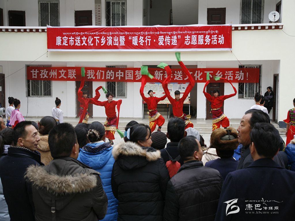 本網(wǎng)訊(本網(wǎng)記者 張兵)1月8日,由州文聯(lián)與康定市聯(lián)合主辦的以“我的中國夢”為主題的2016送文化下鄉(xiāng)文藝演出隊迎著冬陽伴著寒風(fēng)走進(jìn)大山深處的金湯鎮(zhèn)。整臺演出節(jié)目新穎、形式多樣,獨唱、歌舞、川劇、政策宣講等節(jié)目精彩紛呈,不時博得觀眾們的熱烈掌聲,鎮(zhèn)政府成了歡樂的海洋。同時,州攝影家協(xié)會、州書法家協(xié)會的專家還現(xiàn)場免費拍攝全家福照片、免費書寫春聯(lián)。“送文化下鄉(xiāng)”演出隊帶去了黨和政府對人民群眾的關(guān)懷,同時也營造了文明、健康、歡樂、祥和的節(jié)日氣氛。當(dāng)天,“送文化下鄉(xiāng)”演出隊不辭辛苦,還在姑咱鎮(zhèn)進(jìn)行了演出。