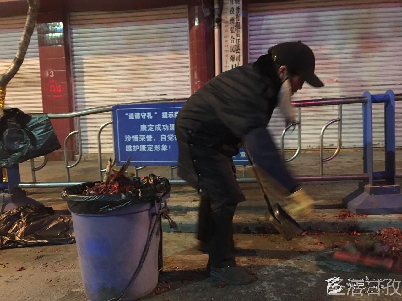 200多名環(huán)衛(wèi)工人分布在康定城的大街小巷忙碌著。從12點開始,大約要持續(xù)到早晨的6:00左右,稍作休息,早上八點,他們又將開始新一天的工作。