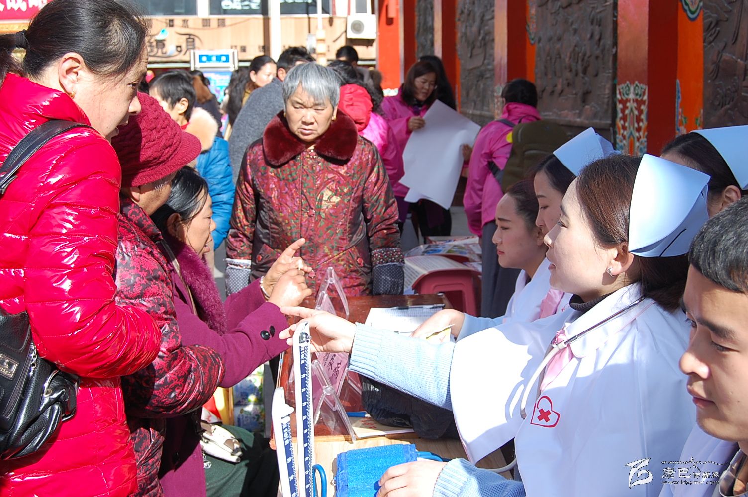 相關部門在情歌廣場周圍擺放了大量宣傳資料,州(市)法院、檢察院、公安、司法和巾幗維權律師服務團成員為大家提供了相關法律法規(guī)咨詢,州人社局等部門向廣大群眾宣傳了州委“精準扶貧”等惠民政策?;顒蝇F(xiàn)場共發(fā)放宣傳資料兩萬余份,對800余名群眾進行了義診義檢。圖為州醫(yī)院、康定市醫(yī)院對群眾進行義診義檢。