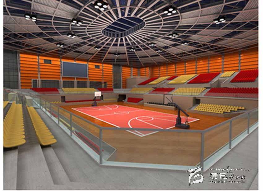 該館負(fù)一層為一個(gè)238車位的地下停車庫(kù)和若干設(shè)備用房。一層核心區(qū)是一個(gè)可進(jìn)行籃球、排球、手球、羽毛球、乒乓球、體操等比賽的標(biāo)準(zhǔn)化綜合比賽場(chǎng);周邊設(shè)休息室、會(huì)議室、消音室、醫(yī)療室、分線室、檢錄室、洗浴室、準(zhǔn)備室、轉(zhuǎn)播室等附屬功能用房。利用該轉(zhuǎn)播室可以實(shí)現(xiàn)網(wǎng)絡(luò)、電視對(duì)場(chǎng)內(nèi)活動(dòng)的實(shí)時(shí)轉(zhuǎn)播。二層主要有醫(yī)務(wù)室和休息室。三層是控制中心機(jī)房、工作室。聲光控制室、計(jì)時(shí)計(jì)分屏室在四層。體育場(chǎng)內(nèi)共設(shè)10個(gè)無障礙席位在內(nèi)的2998個(gè)固定座席和730活動(dòng)座位,分布在1至4層。