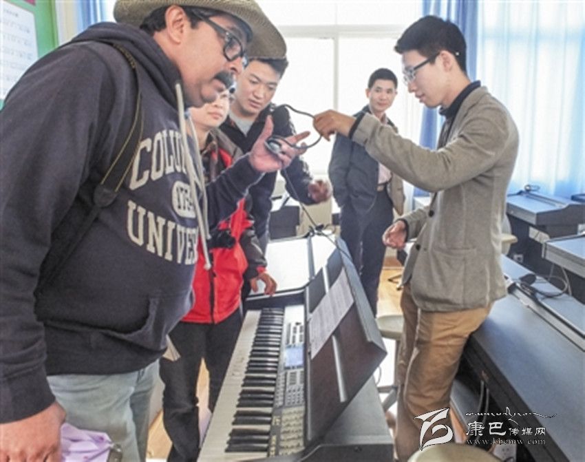 隨后,達哈爾·阿斯毫克一行來到教學區(qū),通過參觀學生閱讀室、多功能音樂訓練室、多媒體教室了解了該校的硬件設施建設和綜合發(fā)展情況。在學生閱讀室,達哈爾·阿斯毫克和同伴們認真聽取了學校工作人員關于閱讀室內圖書種類、圖書使用情況的介紹;當發(fā)現(xiàn)其中有不少圖書是鄉(xiāng)城的地方性著作時,一名尼泊爾記者當即感慨“太了不起了!”。親自試用教室里陳放的電子鋼琴之后,印度《西隆時報》德里站首席記者納亞克表示,“眼前所看到的一切然我對中國教育的發(fā)展感到驚奇。”他這一說法也很快引起同行者的共鳴。