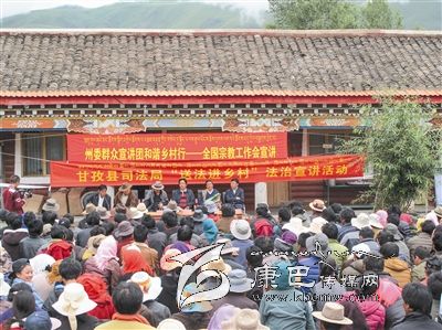 為了使普法工作常態(tài)化,鄉(xiāng)城縣組建了法律服務(wù)隊(duì),常態(tài)深入鄉(xiāng)村、寺廟、草場(chǎng)開(kāi)展法律服務(wù)。組建老干部宣講團(tuán),深入開(kāi)展“法律七進(jìn)”活動(dòng)、“六五普法”、“送法下鄉(xiāng)”、“反邪教警示教育”、“蟲(chóng)草、松茸季節(jié)法制宣傳”等活動(dòng)。在寺廟僧侶中常態(tài)開(kāi)展“一反兩講”、“三反三珍”宣傳教育等,引導(dǎo)宗教與社會(huì)主義社會(huì)相適應(yīng)。多姿多彩、新穎生動(dòng)的普法載體,組成了道道靚麗的法制宣傳風(fēng)景線(xiàn)。