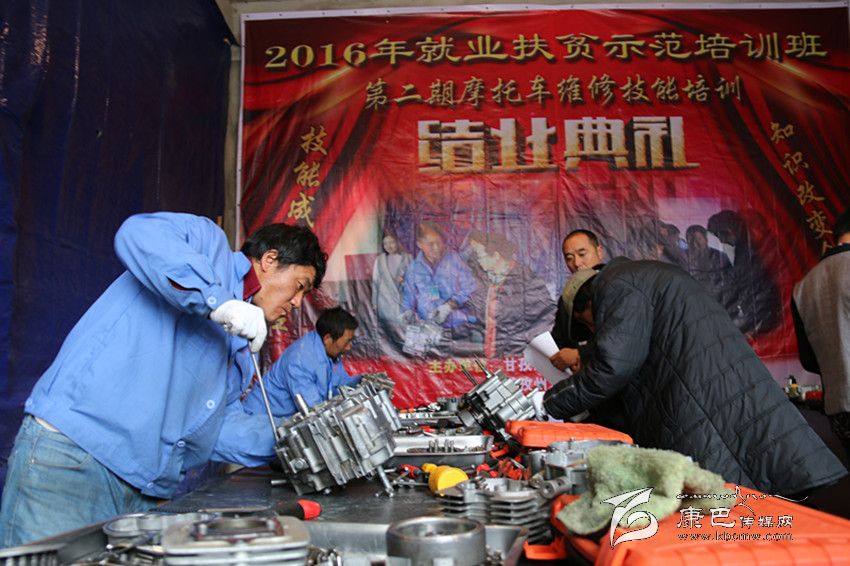 據(jù)了解,為深入貫徹落實(shí)州委、州政府精準(zhǔn)扶貧工作精神,高標(biāo)準(zhǔn)、高質(zhì)量完成就業(yè)扶貧技能培訓(xùn)和就業(yè)促進(jìn)專項(xiàng)計(jì)劃,州人力資源和社會(huì)保障局抓緊安排部署,開展了系列就業(yè)扶貧技能培訓(xùn)示范活動(dòng)。2016年10月10日至29日,第二期就業(yè)扶貧技能培訓(xùn)示范班——摩托車維修技能培訓(xùn)在康定開展,來自16個(gè)縣的45名建檔立卡貧困戶勞動(dòng)力參加培訓(xùn),為解決學(xué)員們的后顧之憂,學(xué)員們的往返交通費(fèi)、住宿費(fèi)、伙食費(fèi)、實(shí)訓(xùn)工裝費(fèi)、資料費(fèi)全免。今天是考核和技能比賽時(shí)間,學(xué)員們正在輪流進(jìn)行發(fā)動(dòng)機(jī)的拆裝,考核合格的學(xué)員將獲得初級(jí)職業(yè)資格證書。