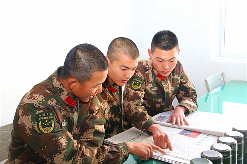 為充分發(fā)揮紅色文化凝神聚氣、鑄魂育人作用,激發(fā)廣大官兵弘揚紅軍傳統(tǒng)、履行職責(zé)使命、砥礪戰(zhàn)斗精神的思想自覺、政治自覺和行為自覺,近日,川西高原武警二支隊傾心打造了形式多樣、內(nèi)容豐富的“紅色文化套餐”,使官兵在潛移默化中感悟紅色文化的獨特魅力,在學(xué)習(xí)傳承中砥礪意志、激發(fā)斗志、提高素質(zhì),不斷厚實了部隊“紅色土壤”,不斷提升了部隊“軟實力”。圖為官兵在閱讀紅色書籍及黨報。 (張小剛 攝影報道)