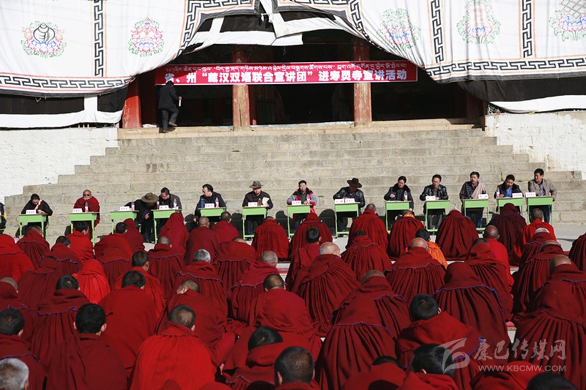 省、州藏漢雙語聯(lián)合宣傳團(tuán)進(jìn)寺廟開展法治宣講。 本報(bào)資料圖