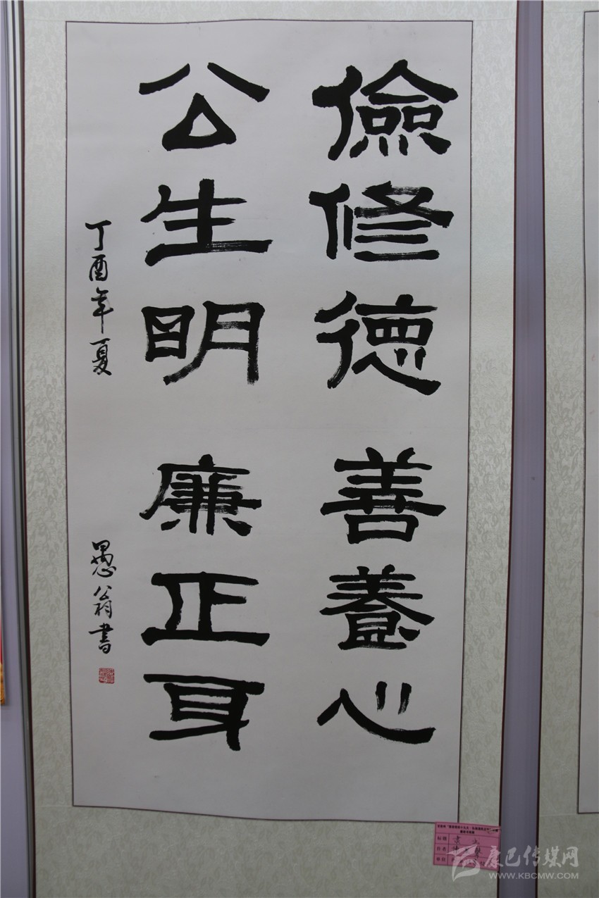 本網(wǎng)訊(記者 宋志勇 文/圖)“儉修德,善養(yǎng)心;公生明,廉正身?!薄爱?dāng)不住今天的誘惑將失去明天的幸福。”“清廉”..........。隸書、行草、草書等一幅幅書法作品行云流水、飛揚灑脫。這是9月15日,由州紀(jì)委、州委宣傳部共同主辦,州直工委、州文明辦協(xié)辦的我州“喜迎黨的十九大?弘揚清風(fēng)正氣”主題廉政書畫展在康定劇場開展時,參與此次活動的作者以各自的方式創(chuàng)作出一件件主題鮮明的精美力作,既增強全社會反腐倡廉意識,也營造各族人民喜迎黨的十九大的濃厚氛圍。