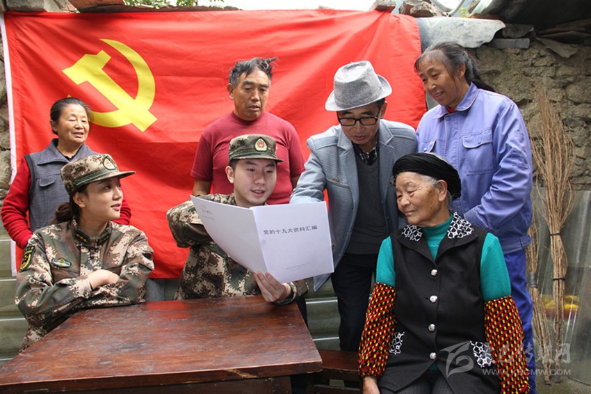 本網訊(劉杰 李華時 文/圖)為幫助駐地群眾更好的學習掌握黨的十九大精神,11月6日,武警四川省總隊醫(yī)院甘孜衛(wèi)生隊派出由理論骨干組成的宣傳小分隊,走進群眾家里宣講黨的十九大精神,第一時間把黨的聲音傳達到基層一線。該醫(yī)院政委李英強表示,部隊作為黨領導下的武裝力量,有責任幫助駐地群眾學習領會黨的十九大精神,把黨的最新理論成果傳遞到群眾中。