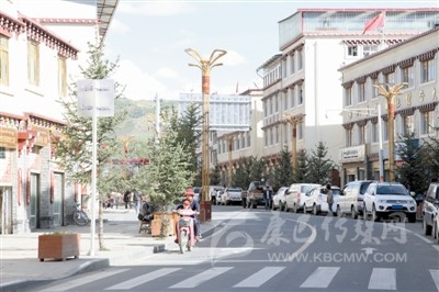 理塘縣城市風(fēng)貌改造一角。
