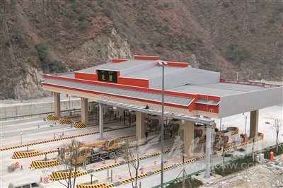 齊整的標(biāo)志線、指示路標(biāo),安全的隔離柵、防護(hù)網(wǎng),醒目的信號燈、提示牌……道路附屬設(shè)施井然齊備,體驗(yàn)車隊從ETC車道剛駛出,高懸著“雅康高速歡迎您”電子指示牌的瀘定收費(fèi)站出現(xiàn)在眼前,二郎山隧道近在咫尺。
