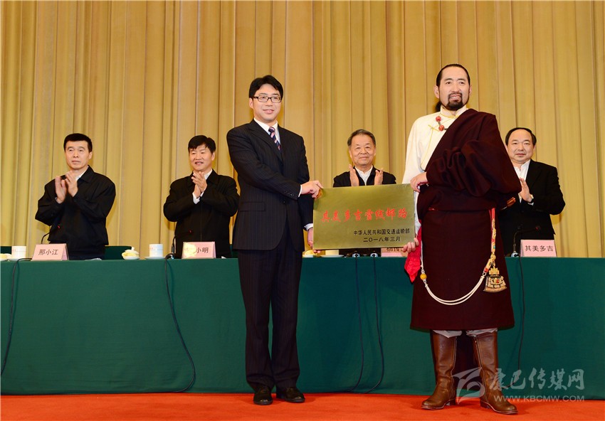 交通運輸部黨組書記楊傳堂為“其美多吉雪線郵路”授牌。 朱正義 攝