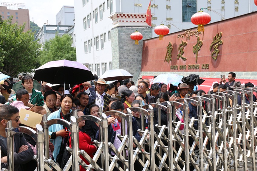 開(kāi)考前,1600多名考生在康定中學(xué)考點(diǎn)候考。