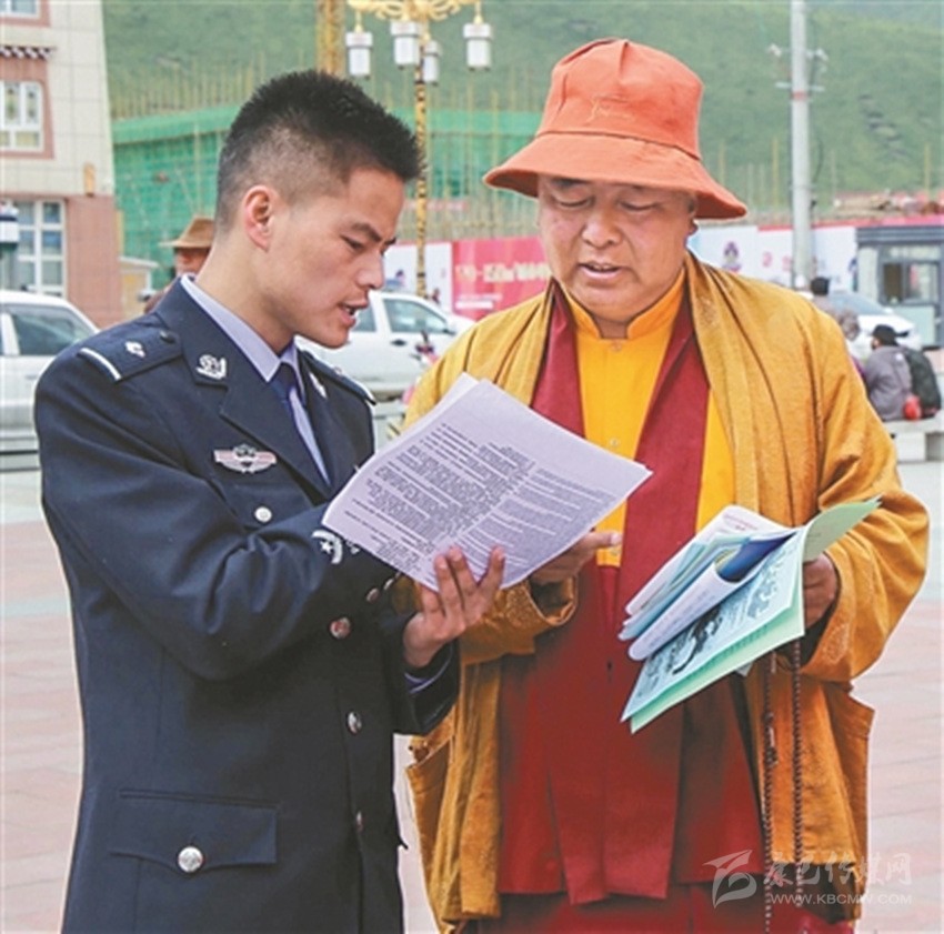 石渠民警向群眾宣傳法律知識。