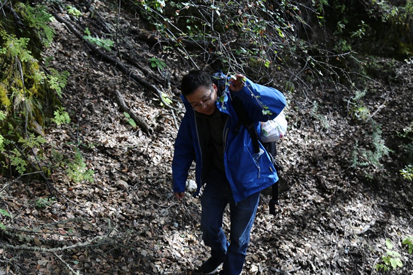 前方報(bào)道組組員余秋林穿行在樹林中。