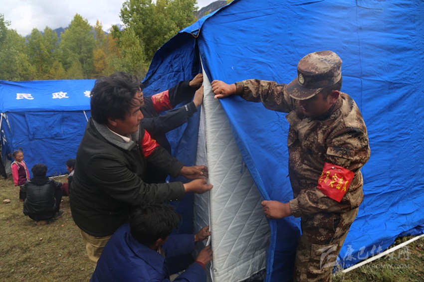 走進(jìn)炯青洞臨時(shí)安置點(diǎn)27號(hào)帳篷,見到村民康珠正在整理被蓋。她介紹說,縣里給每戶村民發(fā)了5床棉被,發(fā)放了礦泉水、方便面、餅干,發(fā)放了常用藥,還拉上了電,每天晚上能用上4個(gè)小時(shí)的電,我們睡了,還有黨員干部輪流值班。“黨和政府為我們想得很周到,讓我們吃得飽穿得暖還睡得安全?!?/p>