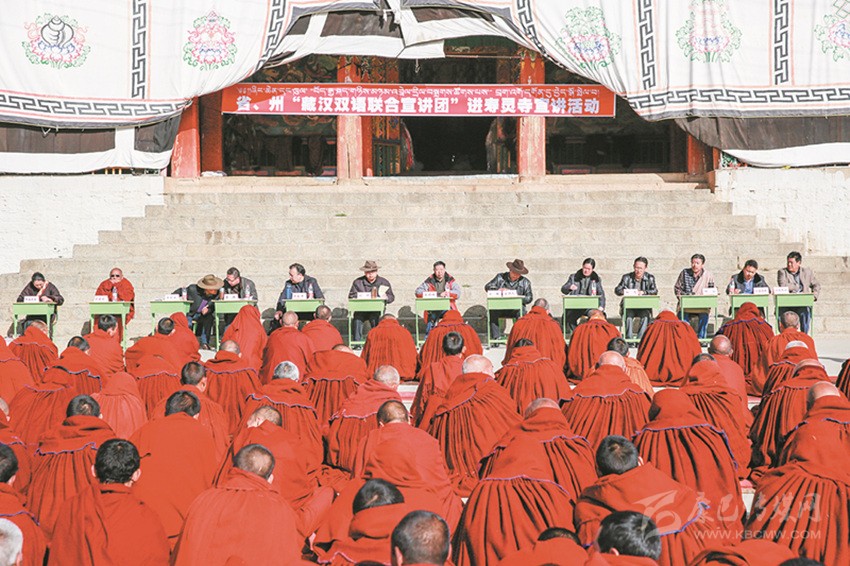 在法律進(jìn)寺廟方面,我州持續(xù)深化法律進(jìn)寺廟“四進(jìn)七有”活動(dòng),健全完善寺廟法治宣傳欄、法律圖書角、法律服務(wù)聯(lián)系點(diǎn)、法律明白人管理等工作制度,建成寺廟法治宣傳欄598個(gè)、圖書角504個(gè)、法律服務(wù)聯(lián)系點(diǎn)489個(gè),培訓(xùn)培養(yǎng)寺廟“法律明白人”947人;組織開展《憲法》《刑法》《刑事訴訟法》《國(guó)家安全法》《治安管理處罰法》《道路交通安全法》《宗教事務(wù)條例》進(jìn)寺廟專項(xiàng)活動(dòng),全州共開展法律入寺宣傳1900余場(chǎng)次,覆蓋寺廟532座、僧尼8萬余人次。