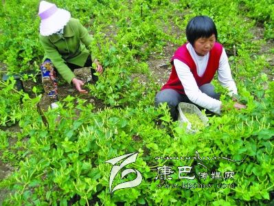 農(nóng)戶采摘金銀花。