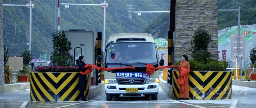 “木雅古碉”建筑矗立兩旁、六出四進通道一字排開;巨大熒幕流光溢彩,連接通道窗明幾凈;從無人機航拍畫面可以看到,一面巨大的五星紅旗,已在站頂平層鋪展開來……9月28日上午8時整,一輛客車從升航特大橋駛來,撞破紅綢駛向康定城,旁邊車道上等待多時的車輛依次行進,雅康高速公路上規(guī)模最大的收費站——康定收費站正式啟用,康定連接線和入城大道通車。“康定連接線建成后將極大提高雅康高速公路進入康定城區(qū)車輛通行效率、有效改善康定入城交通的擁堵狀況?!辈貐^(qū)高速公路公司相關負責人如是說。