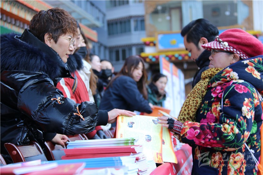 活動(dòng)現(xiàn)場(chǎng),工作人員為市民發(fā)放民族團(tuán)結(jié)進(jìn)步宣傳品、民族團(tuán)結(jié)進(jìn)步藏漢雙語宣傳教育讀本、宣傳畫、宣傳折頁、宣傳掛歷、《中國民族報(bào)》甘孜州民族團(tuán)結(jié)???、《民族》雜志甘孜州民族團(tuán)結(jié)專刊等各類宣傳資料9800余份(本),擺放展板30個(gè)。來自丹巴縣的仁真說:”現(xiàn)在的幸福生活離不開偉大的中國共產(chǎn)黨的領(lǐng)導(dǎo),也離不開全國各族人民共同團(tuán)結(jié)奮斗、共同繁榮發(fā)展?!?/p>