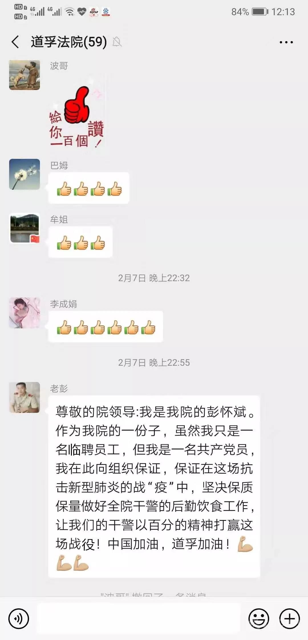 彭懷斌向院黨組作出鄭重承諾:“作為我院的一份子,雖然只是一名臨聘員工,但我是一名共產(chǎn)黨員,我在此向組織保證,保證在這場抗擊新冠肺炎的戰(zhàn)‘疫’中,堅(jiān)決保質(zhì)保量做好全院干警的后勤飲食工作,讓我們的干警以百分的精神打贏這場戰(zhàn)役!中國加油!道孚加油!” 特殊時期,為了保證食材的絕對安全,廚房沒有幫手,所有工序都需要他一手一腳完成,任務(wù)有多重可想而知。