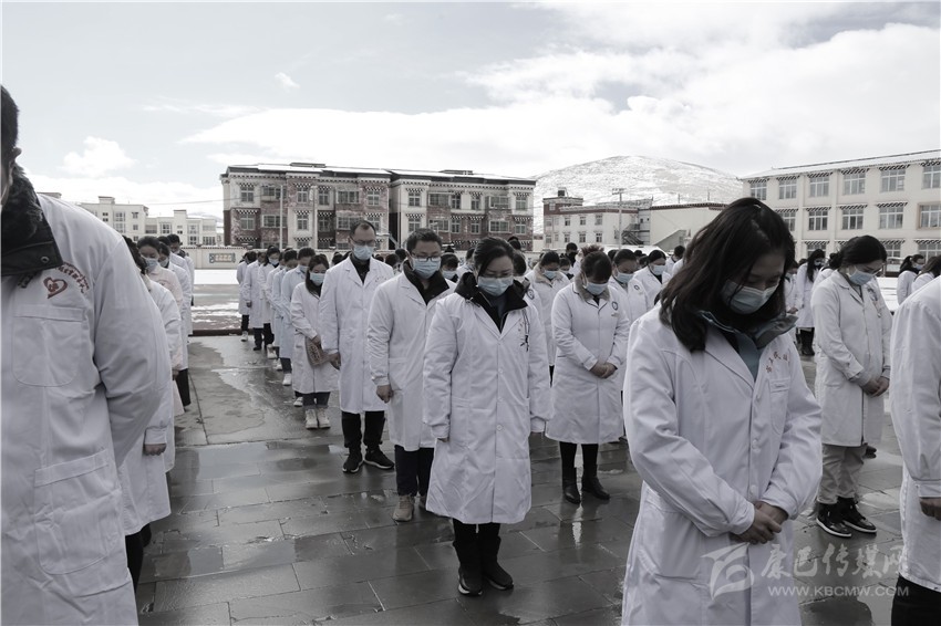 色達縣醫(yī)務工作者向新冠肺炎疫情犧牲烈士和逝世同胞默哀。