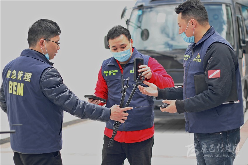 州應(yīng)急管理局工作人員準(zhǔn)備調(diào)試信息設(shè)備。